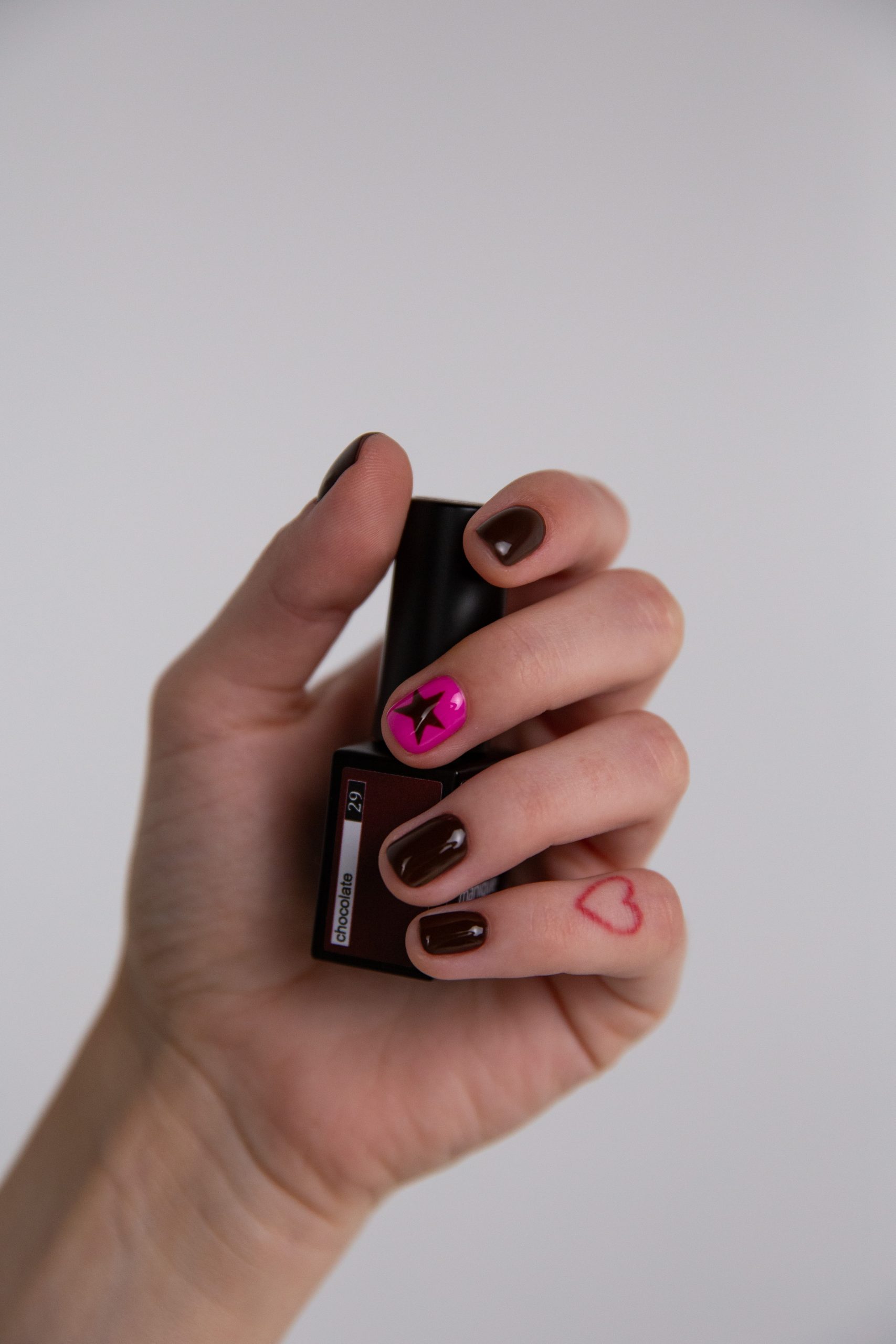 Цветной гель-лак плотной консистенции. Цвет chocolate 29, коричневый шоколадный. Коллекция automne. Высокая пигментация цвета позволяет наносить многие оттенки в один слой, что значительно сокращает время работы мастера ногтевого сервиса, а так же снижает затраты на расходный материал. Перед применением цветной гель-лак рекомендуем взболтать, зажав флакон между ладонями перекатыванием, для того, чтобы произошло равномерное распределение пигмента в материале. При нанесении гель лак не полосит, не скатывается с базового покрытия. «Умная палитра» позволяет мастерам с любым опытом создавать свою уникальную коллекцию и удивлять клиентов. Качество цвета сохраняется от 3 до 5 недель. Материал не содержит вредных веществ, отсутствует едкий запах. Удобная кисть обеспечивает легкость и комфорт в нанесении материала.
